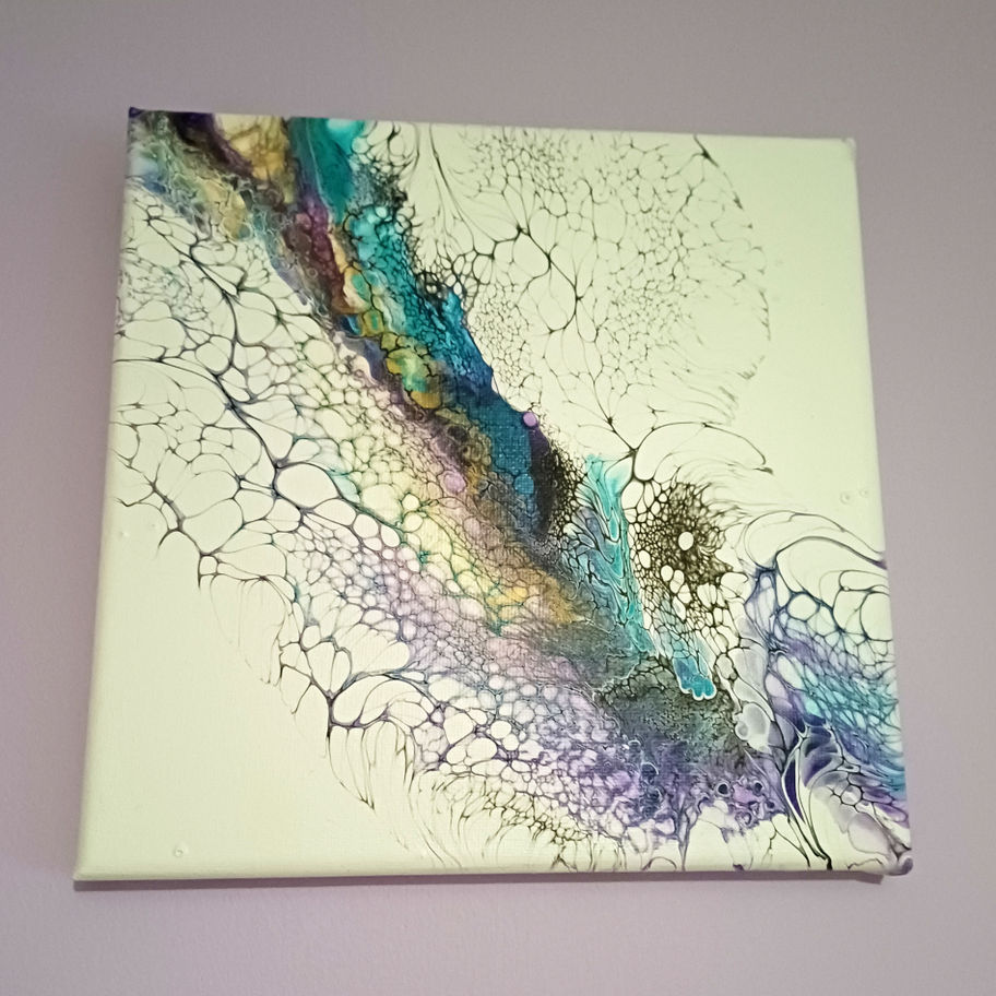 An original, one-of-a-kind, fluid acrylic work of art by Caroline Moore. They are embracing chaos and ordering it to embrace creativity.